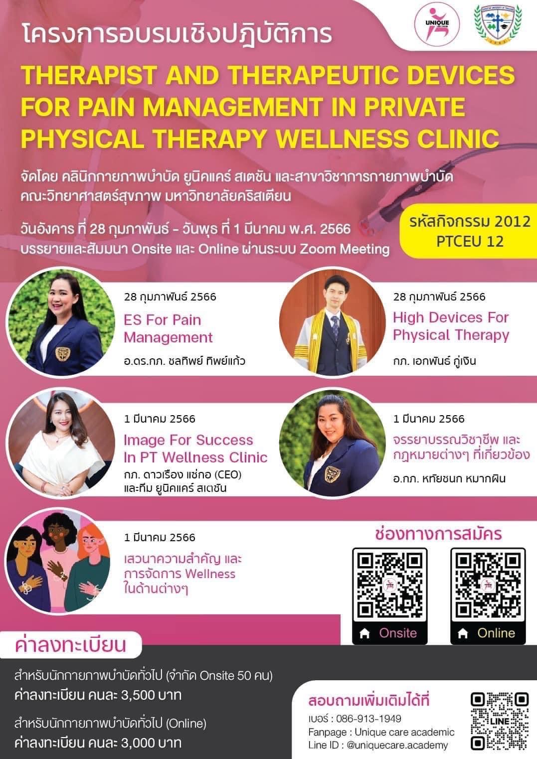 โครงการอบรมเชิงปฏิบัติการ Therapist and Therapeutic devices for pain management in private physical therapy wellness clinic